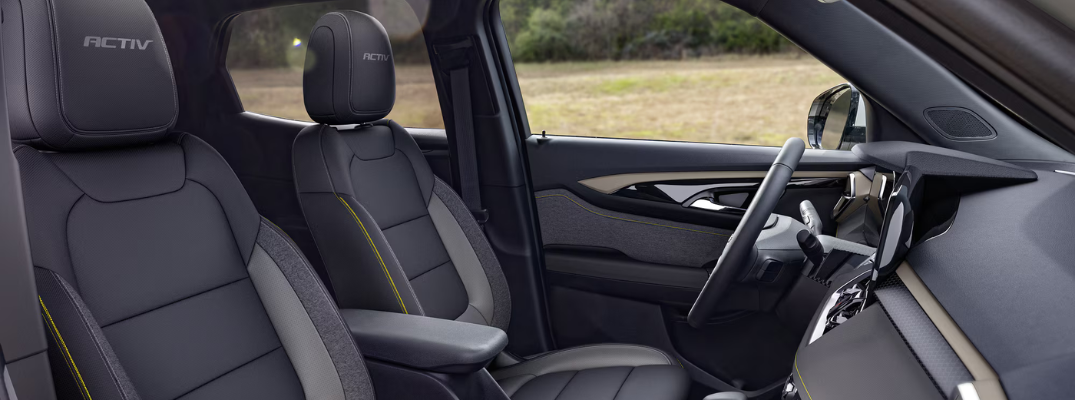 The interior of the Trailblazer is spacious, accommodating up to five people. You’ll get plenty of room for your cargo, ensuring you go on your road trips well-equipped with up to 1,550 litres of maximum cargo space. Moreover, you can easily flat-fold the front passenger seat for additional cargo space. Like multiple exterior paint colours, the Chevy Trailblazer is also available in different interior accents and material craftsmanship, including:Â
